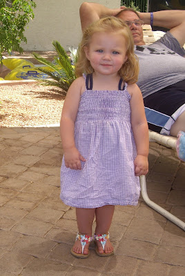 Sarah went to the all night party and then we left for the resort the next morning. She played all day and by evening she was very tired. She did pose for this picture for her G-Ma Thanks Sarah! |